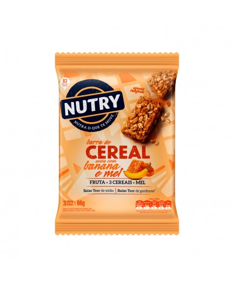 Barra De Cereais Nutry Aveia Banana E Mel - Nutrimental - Caixeta Com 3 Unidades De 22G